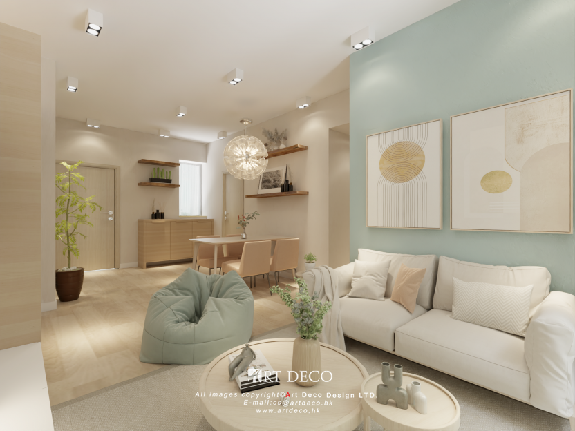 設計師透過清新簡約風替空間定調,給予流暢簡約的線條、溫潤的木質建材,並依照使用需求、量身打造每一道使用機能,完成屋主心目中的居家心願。